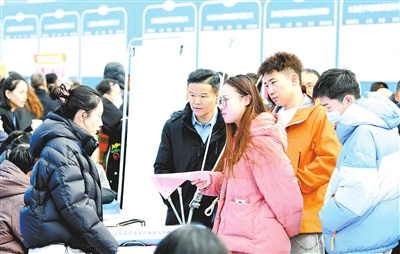 企业工作人员与求职者交流